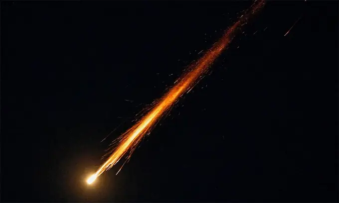Vệt lửa trên bầu trời sau khi Israel đánh chặn tên lửa Iran ở Ashkelon ngày 28/2. (vnexpress) Ảnh: Reuters