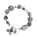 Vòng tay đá thạch anh tóc đen phối mix bạc