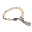 Vòng tay đá Thạch anh tóc vàng phối Charm Hoa mix bạc