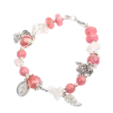 Vòng tay bạc đá đào hoa phối đá thạch anh trắng mix bạc